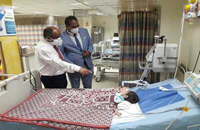Dr. Ashraf Meeabed said that Prof. Ghallab inspected the pediatric department to ensure the medical service introduced to the patients. He added that the department includes 10 N.I.C.U, 5 beds and 3 Intensive Phototherapy units, he also inspected the new PCR device, the intensive care unit that is supplied with 18 beds and 10 ventilators which are allocated to receive COVID-19 cases.