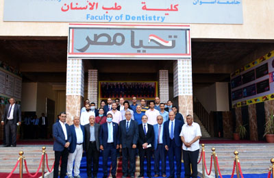 Today corresponding to 18th Sep. 2020, Dentistry Sector of SCU visited the faculty of dentistry in Aswan Al Gadeda Campus. The committee was accompanied by Aswan university president Prof. Ahmed Ghallab, the vice president of graduate studies and research Prof. Ayman Othman, the vice president of community service and environmental development Prof. Magdi Mohamed Ali, the dean of the faculty of medicine Prof. Mohammed Dahshori, the acting dean of the faculty of dentistry Dr. Wael Mohammed Moubark as well as the dean of the faculty of agriculture Prof. Yasser Abd Al Hameed.