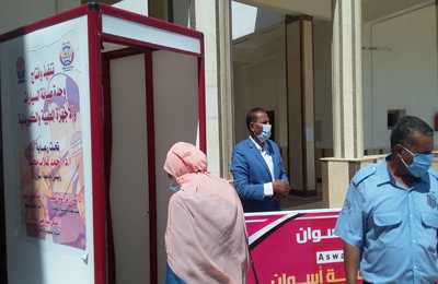 Today, Aswan university president Prof. Ahmed Ghallab Mohammed has inspected the examination halls in the faculties of Dar Al Uloom and Al Alsun in Aswan Al Gadeda Campus to follow up the implementation of the precautionary measures taken to protect students and employees against COVID-19. Prof. Ghallab began his tour by inspecting the measuring of the students’ temperature, wearing the face masks which were distributed for free and keeping safe distance between them. He said that all means of disinfection and sterilization are provided. Prof. Ghallab was accompanied by the dean of the faculty of Dar Al Uloom Prof. Farid Abd Al Zaher, the dean of the faculty of Alsun Prof. Naser Abd Al Razeq as well as the dean of the faculty of education Prof. Rady Abd Al Mageed.