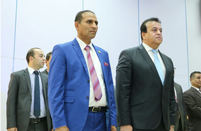 شارك الأستاذ الدكتور/ خالد عبد الغفار – وزير التعليم العالى والبحث العلمى ، طلاب جامعة أسوان أغنية “يلا بلادى أنا أحبك يا بلادى” بعد أن فاجئ الحضور خلال إفتتاح المقر الجديد لجامعة أسـوان بمدينة أسـوان الجديدة ، بالنزول من المسرح والوقوف وسط طلاب فرقة الموسيقى العربية بكلية التربية النوعية ، وترديد الأغنية الوطنية معهم .