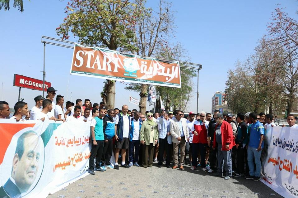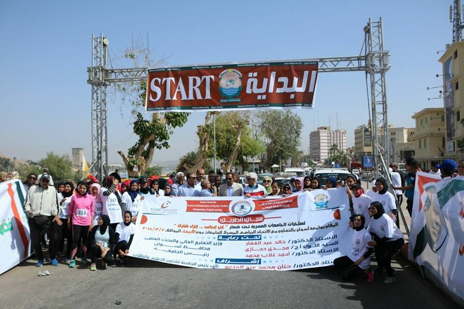 حيث أكد “غـلاب”  بإشتراك عشرة طلاب فى السباق من كل جامعة  ، عشرة طلاب آخرين من ذوي الإحتياجات الخاصة وذلك لخلق روح المنافسة بين طلاب الجامعات المصرية  والحكومية والخاصة والمعاهد العليا لمسافة (3 كيلو متر ) وقـاموا الطالبات ببداية الماراثون من حديقة فريال كنقطة بداية إلي إستاد أسوان الرياضي ،  وبالنسبة للطلاب كانت نقطة البداية الخاصة بهم من نادي التجديف إلي إستاد أسوان الرياضي ، كما تم تكريم الفائزين في السباق ومنحهم الميداليات وكأس المركز الأول وسط حشد من الحضور .