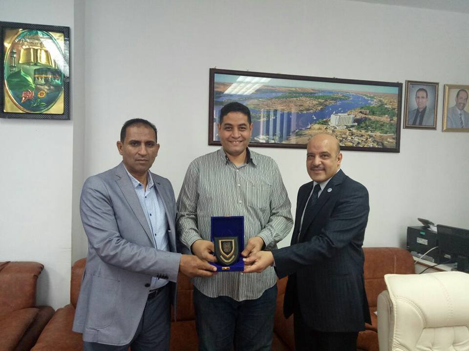 وقدم الدكتور /ماجد الجبالي درع جامعة جواهر لال نهرو الهندية لأستاذ الدكتور /أحمد غلاب محمد _رئيس جامعة أسوان ،وبحضور الاستاذ الدكتور /أيمن عثمان _نائب رئيس الجامعة للدراسات العليا والبحوث.