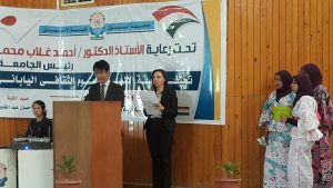 وقام السيد/ ستوشي كواكيتا ، حيث قام بالتحدث عن أهمية تعلم الثقافات الأخري ، وتجربتة الخاصة في تعلم اللغة العربية.