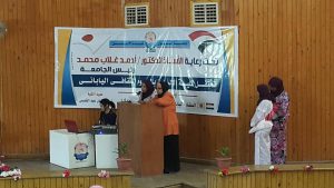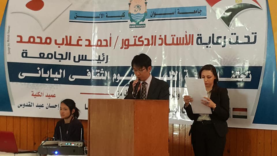 تحت رعاية السيد الاستاذ الدكتور / احمد غلاب محمد – رئيس جامعة أسوان ،والاستاذ الدكتور/ إحسان عبدالقدوس – عميد كلية الألسن، قامت كلية الألسن بجامعة أسوان بتنظيم احتفالية باليوم الثقافي اليابانى . وبحضور السيد/يوكانا كامورا_ نيابة عن المستشار التعليمي بسفارة اليابان، السيد/ أكيى هيرو ساكى _نائب رئيس هيئة الجايكا ،والسيد/ ساتوشي كواكيتا_منسق البرامج لمؤسسة اليابان ، والشيخ محمد عبدالعزيز ،وعمداء ووكلاء الكليات المختلفة