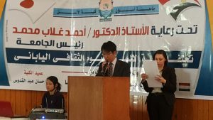 وقدم السيد الأستاذ الدكتور / أحمد غلاب محمد _ رئيس الجامعة ،التهانى لسفارة جمهورية اليابان وهيئة الجيكا والسادة الضيوف وذلك بمناسبة اليوم الثقافي اليابانى، وتحدث على القسم اليابانى ونشاط كلية الألسن المستمر في تبادل الثقافات عبر أقسامها المتنوعة بالكلية ، وأكد سيادته أن محافظة أسوان مهد الحضارات والثقافات في مهرجان وحدة الشعوب والسلام لتبادل الخبرات العلمية والعمل على تشجيع البحث العلمى ، ودعى سيادته الى مبادرة التعليم المتطور بين جامعة أسوان والسفارة اليابانية والتعاون المستمر الذي يخلق جيل ملئ بالثقافة والابداع والتميز العلمى ليصنع قادة لمستقبل مشرق والعمل على تخريج كوادر علمية تستطيع المنافسة في سوق العمل اليابانى في مختلف مجالات .