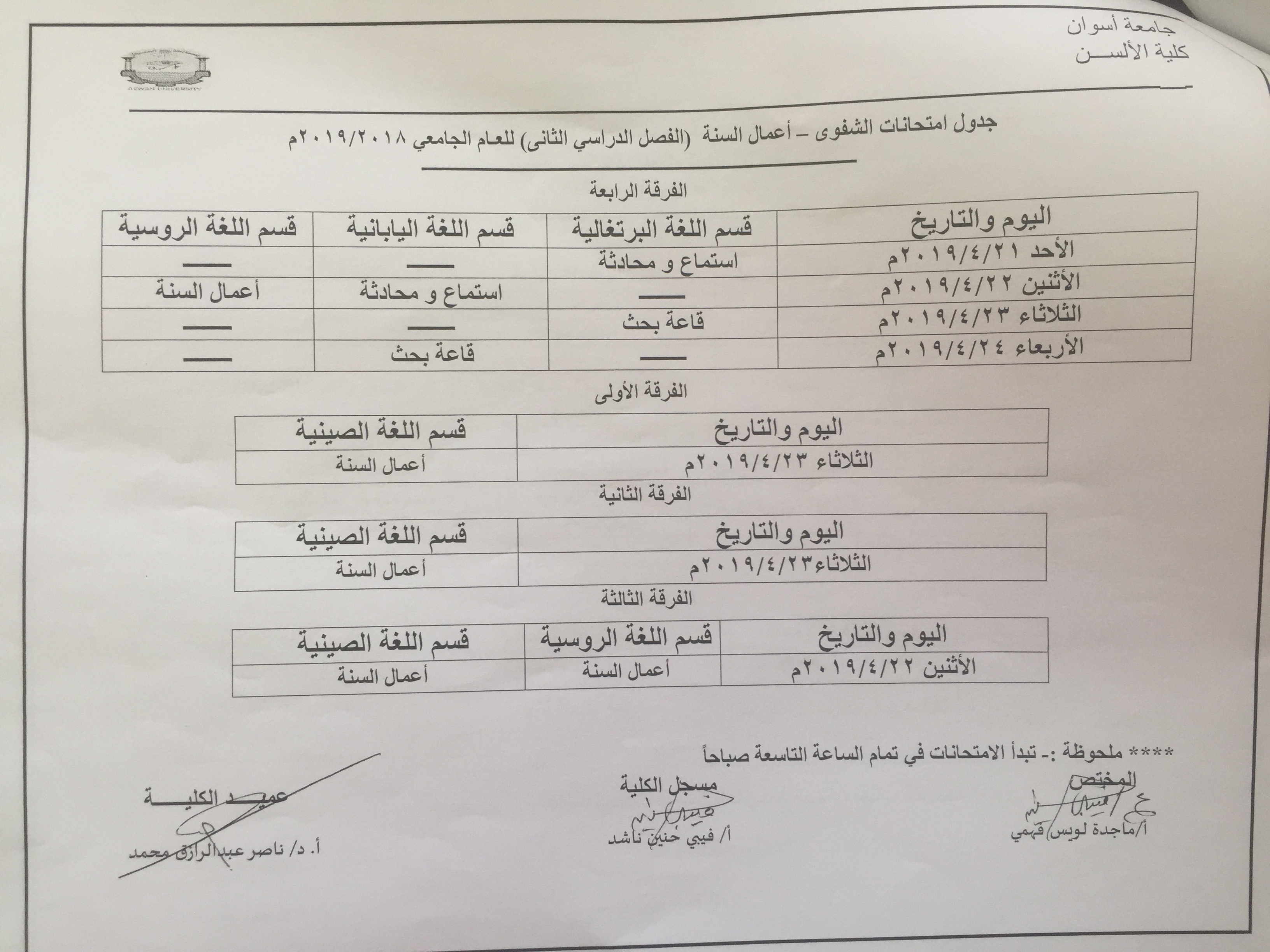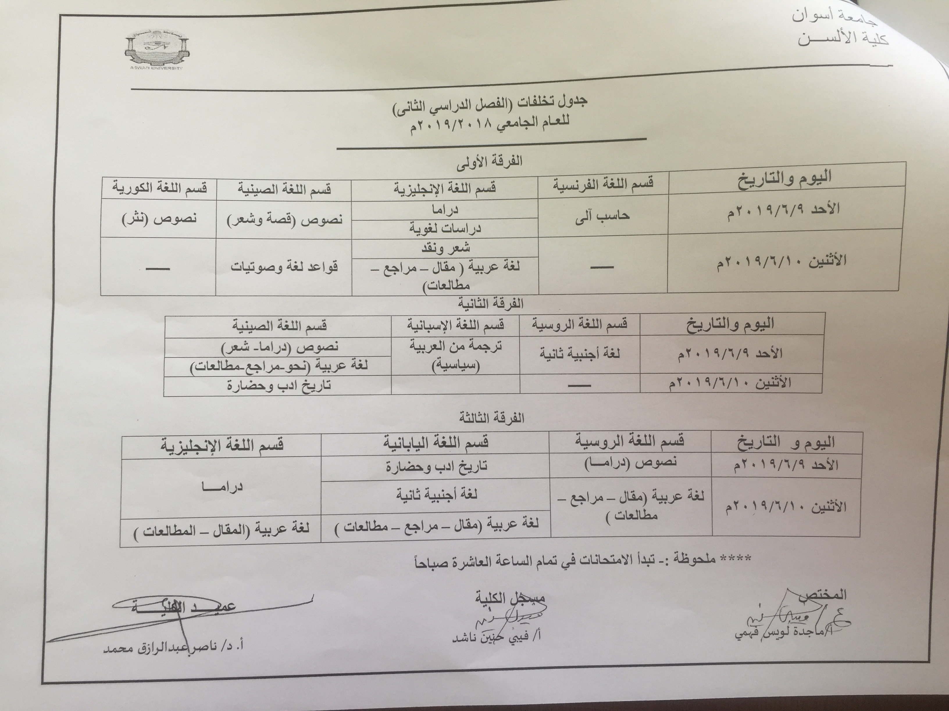 تعلن كلية الألسن جدول امتحانات الفصل الدراسي الثاني