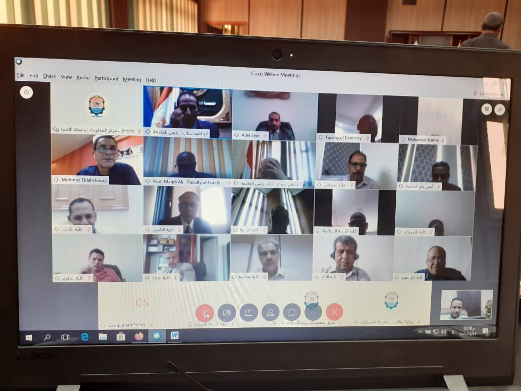 انعقد اليوم الاربعاء مجلس جامعة أسوان رقم 92 برئاسة الأستاذ الدكتور أحمد غلاب محمد رئيس جامعة أسوان لأول مرة بتقنية فيديوكونفرانس