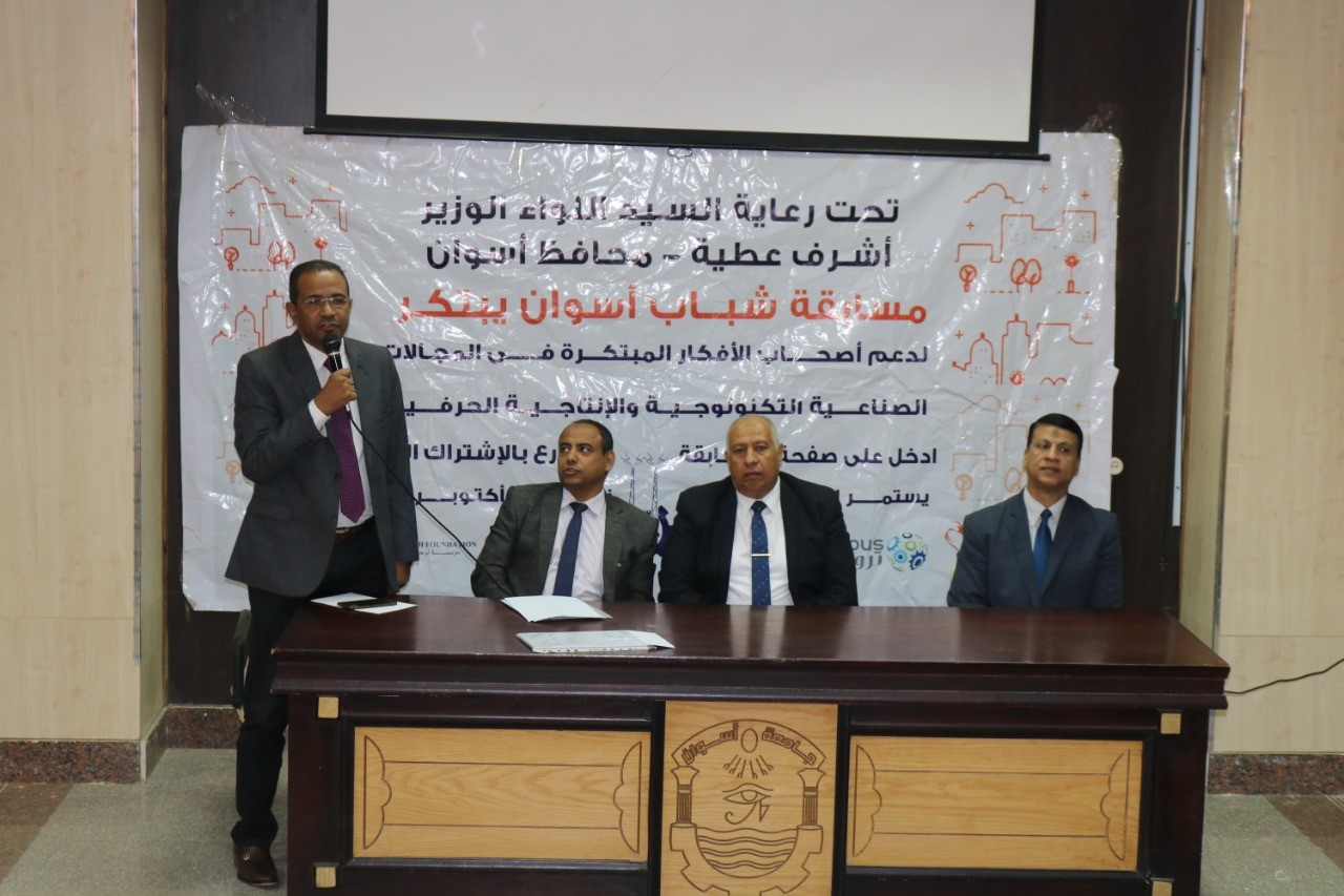 صرح الأستاذ الدكتور/ أحمد غلاب محمد رئيس جامعة أسوان في إطار دور الجامعة المجتمعي وتبني أفكار الابتكار والمبتكرين والعمل علي تعزيز ريادة الاعمال وبالتعاون مع محافظة أسوان يقوم قطاع خدمة المجتمع وتنمية البيئة بجامعة أسوان في عقد سلسلة من الندوات التعريفية للتعريف بشروط وآلية الاشتراك في مسابقة “شباب اسوان يبتكر” التي أطلقتها محافظة أسوان بقيادة اللواء أشرف عطية محافظ أسوان وراعي الإقليم.