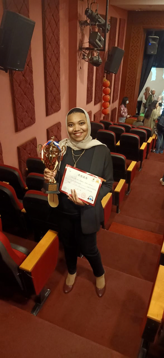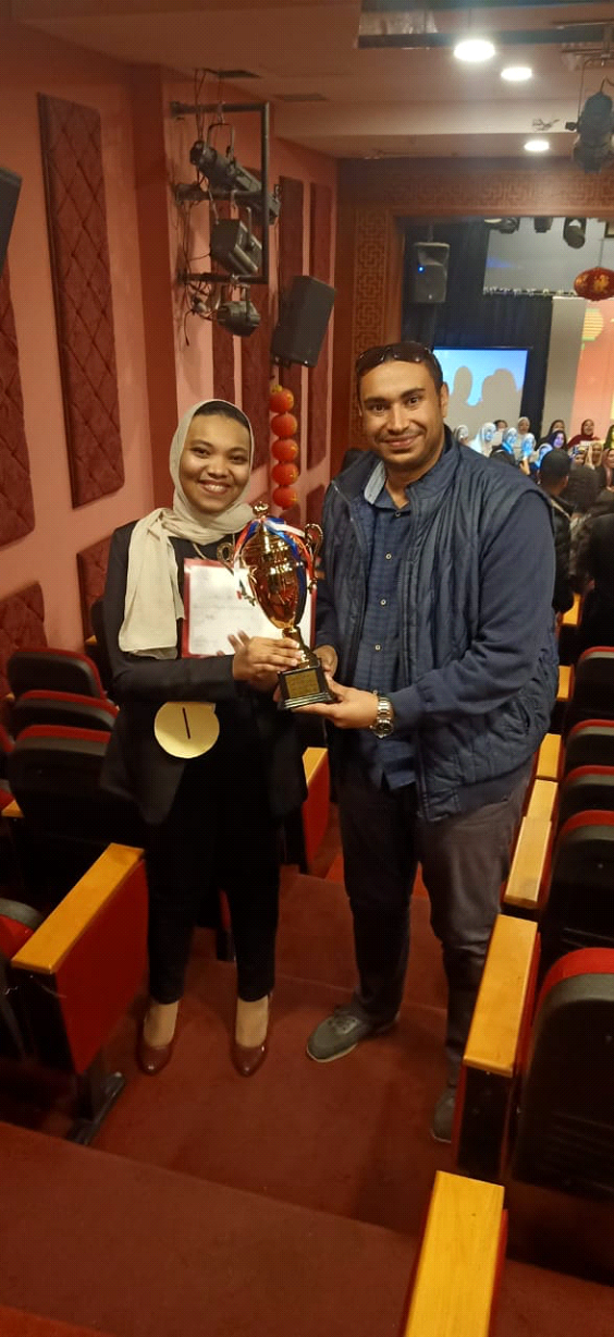 تهنئ كلية الألسن جامعة أسوان الطالبة/ علا علاء عبد الله – المقيدة بالفرقة الرابعة بقسم اللغة الصينية، لحصولها على المركز الثالث على مستوى الجامعات المصرية في مسابقة إلقاء الشعر باللغة الصينية، والتي أقيمت يوم 2022/11/17 م بجامعة القاهرة، وقد أشترك فيها 18 متسابقاً، آملين من جميع طلاب الكلية بمختلف الأقسام المزيد من التفوق.
