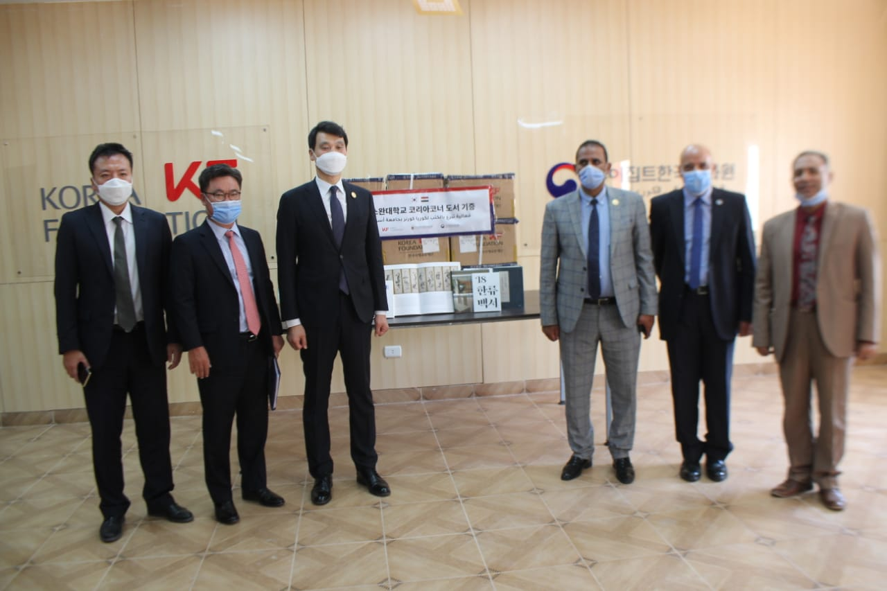 كما رحب الدكتور أحمد غلاب رئيس الجامعة بالسفير الكوري والوفد المرافق له وقاما الطرفان ببحث سبل التعاون المثمر بين جامعة أسوان والسفارة الكورية بالقاهرة وتاتي هذه الزيارة لقسم اللغة الكورية بكلية الألسن بجامعة أسوان كأول زيارة للسفير الكوري لجامعة اسوان في ظل جائحة فيروس كورونا المستجد .