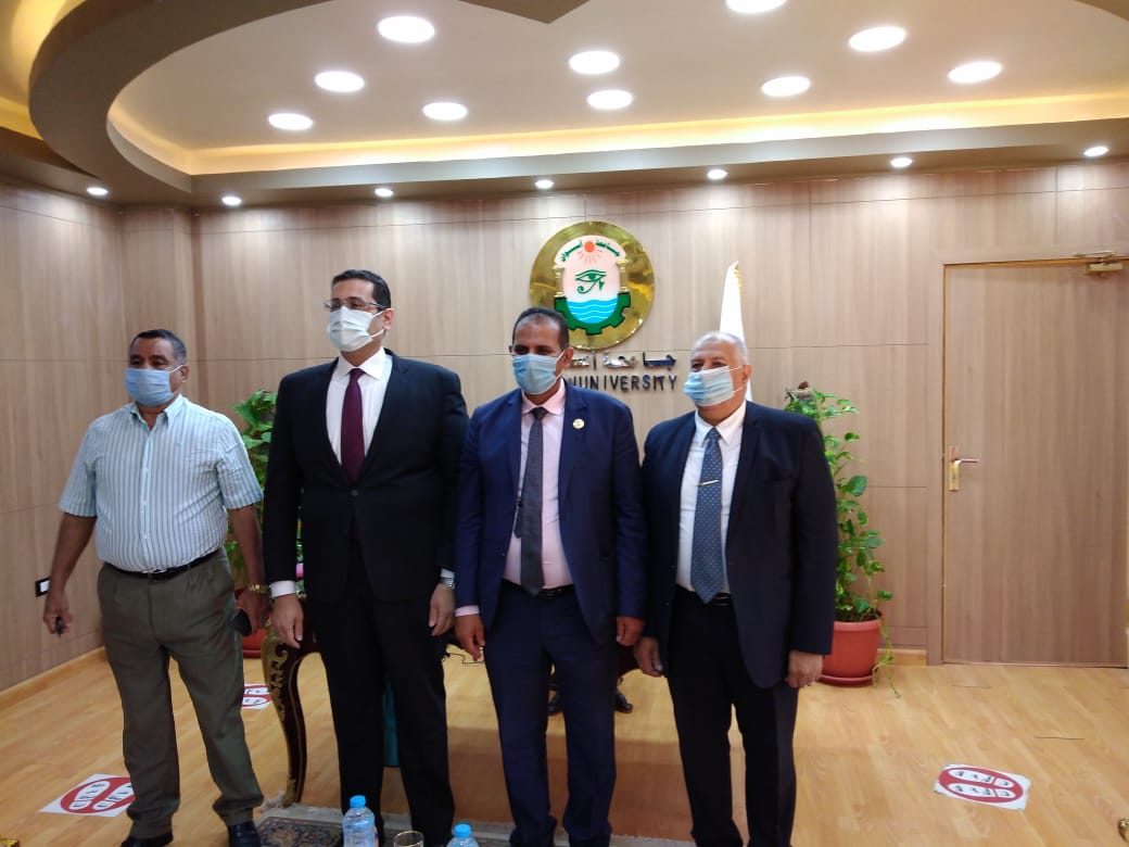 استقبل الأستاذ الدكتور أحمد غلاب محمد رئيس جامعة أسوان اليوم الخميس الموافق 2020/11/19، الدكتور هشام عبد السلام رئيس الجامعة المصرية للتعلم الإلكترونى الأهلية بالحرم الجامعى بصحارى.