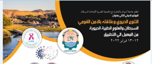 تحت رعاية الأستاذ الدكتور/ أيمن محمود عثمان_ رئيس جامعة أسوان, تنظم جامعة أسوان بالتعاون مع الجمعية المصرية لأبحاث السرطان المؤتمر الدولى الثانى بعنوان التنوع الحيوى وعلاقته بالأمن القومى (السرطان والعلوم الطبية الحيوية من المعمل إلى التطبيق) فى الفترة من ١٢ إلى ١٣ فبراير ٢٠٢٢